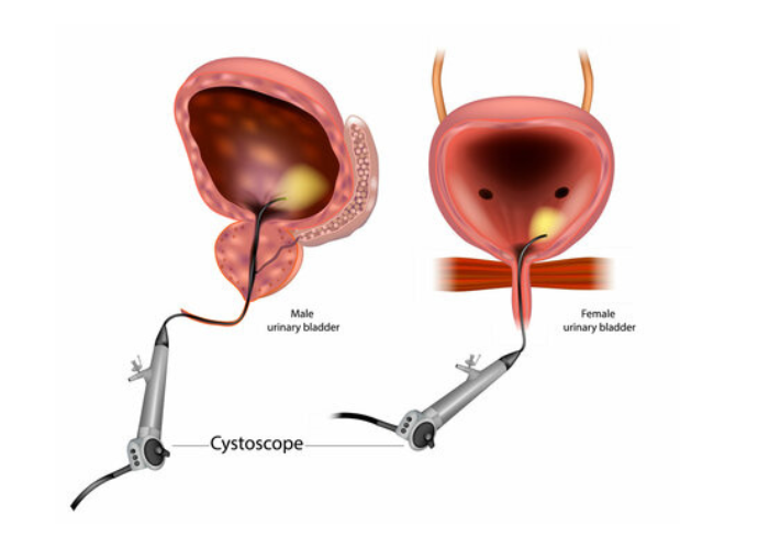 2. Cystoscopy – A thin tube with a camera is inserted into the bladder to examine its interior.